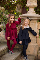 Los diseños incluyen vestidos, ranitas y conjuntos con detalles como cuellos de encaje, grandes lazos y frunces bien definidos. Tejidos con cuerpo, cortes cuidados y una estética clásica que viste la Navidad con elegancia atemporal.