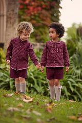 ÓPERA combina tonos burdeos con cuadros clásicos y estampados suaves en una propuesta rica en textura y contraste. Una colección pensada para los días fríos, con prendas cómodas y estilos que pueden coordinarse entre hermanos.