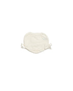 Braga de punto para bebé con dibujo de bodoques en relieve y lazos laterales. Un diseño delicado y elegante, ideal para combinar con blusas, camisas o conjuntos de punto.