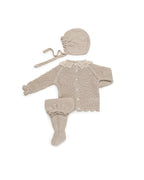 3-PIECE BABY SET WITH OPENWORK KNIT AND LACE-EDGING COLLAR