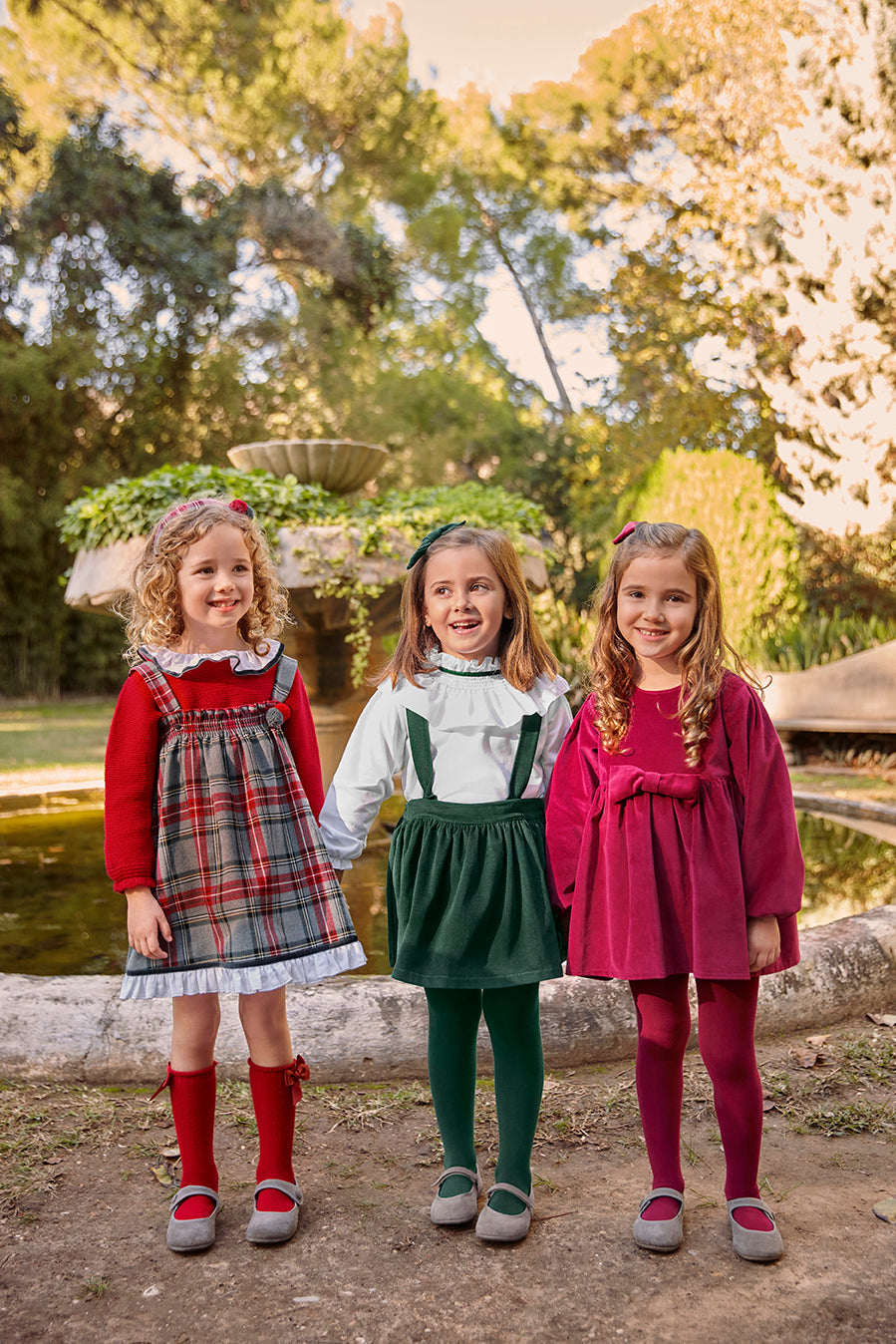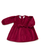 Dress made of soft velvet with long sleeves and a delicate matching bow at the waist. A classic design with a slightly flared silhouette, perfect for celebrations and special occasions.