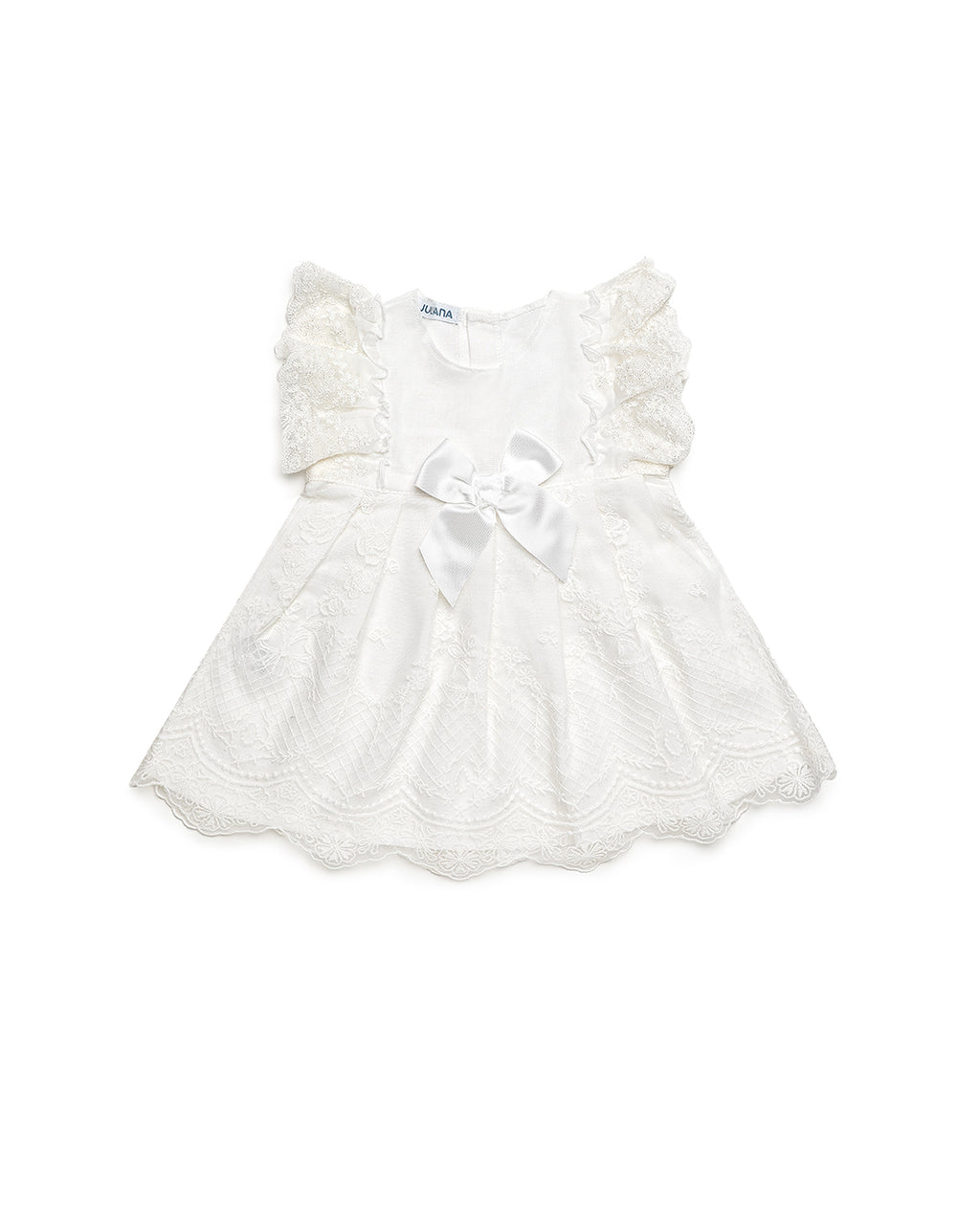 Vestido confeccionado en delicada tela de encaje con puntillas. Un modelo elegante y muy especial.