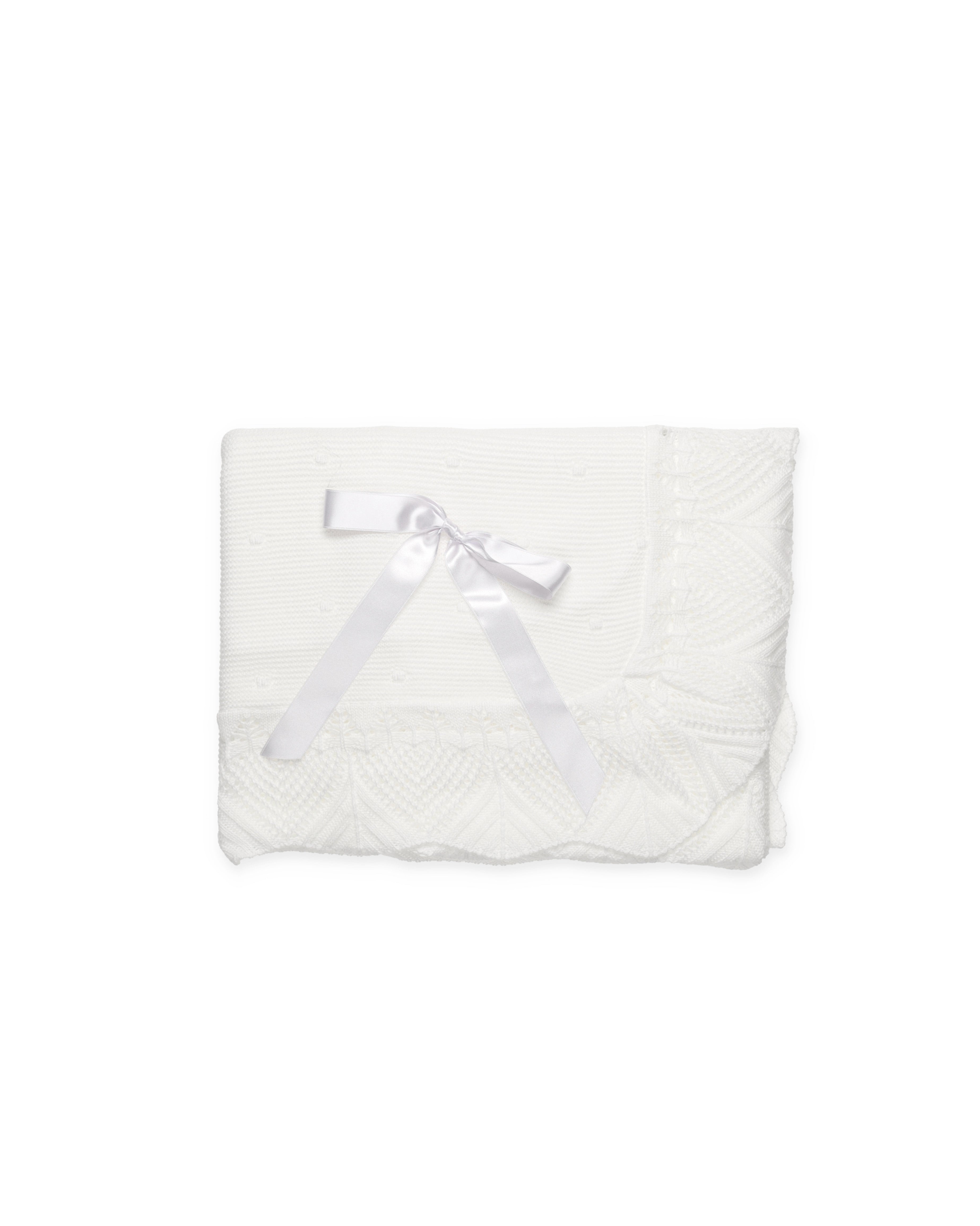 Scialle lavorato a maglia con motivo a pompon. Presenta estremità appuntite con dettagli traforati.