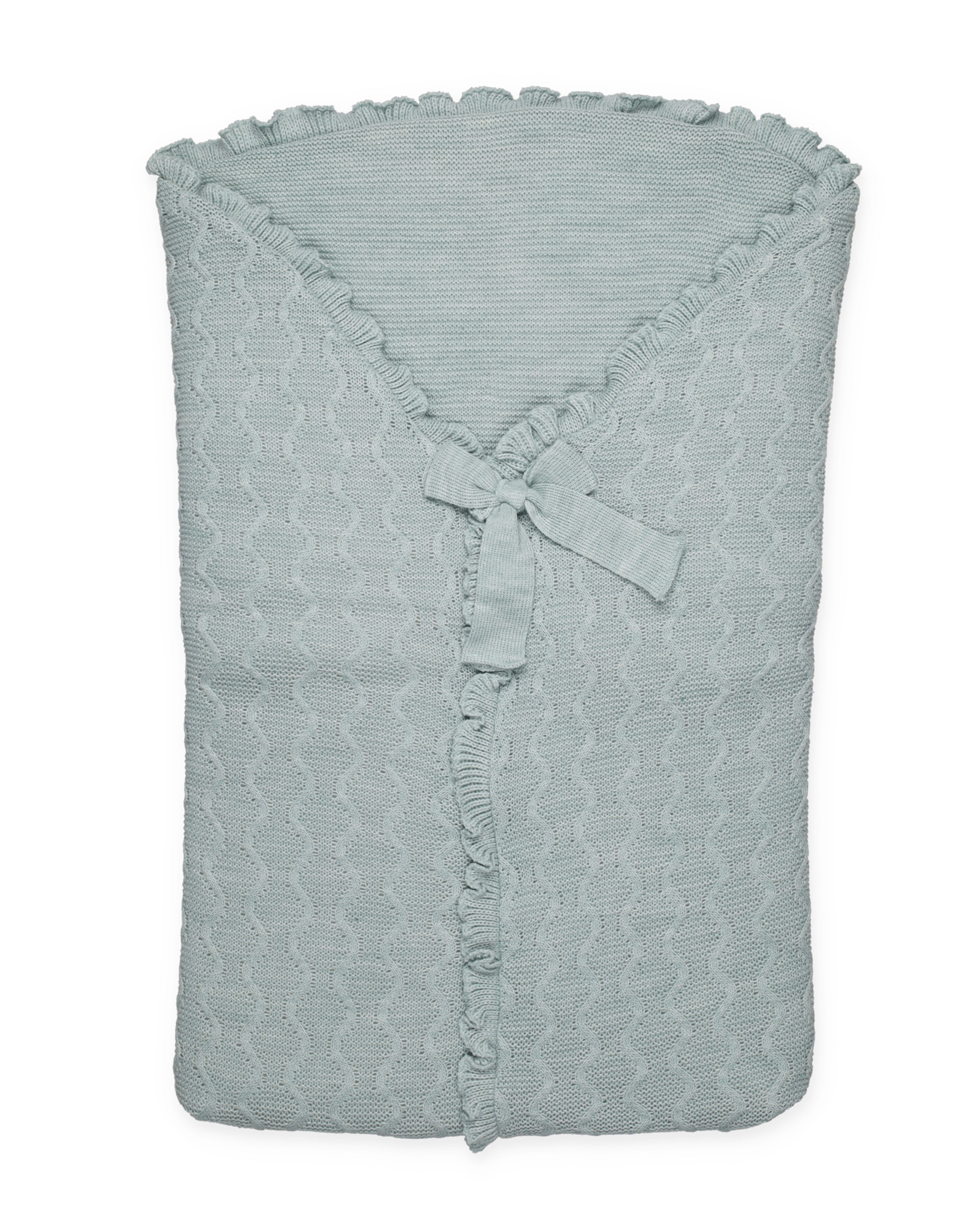 Sacco nanna in maglia con struttura arrotondata e motivo aran. Chiusura con bottoni sul davanti. Cappuccio incorporato. Ideale per fasciare delicatamente il tuo bambino.