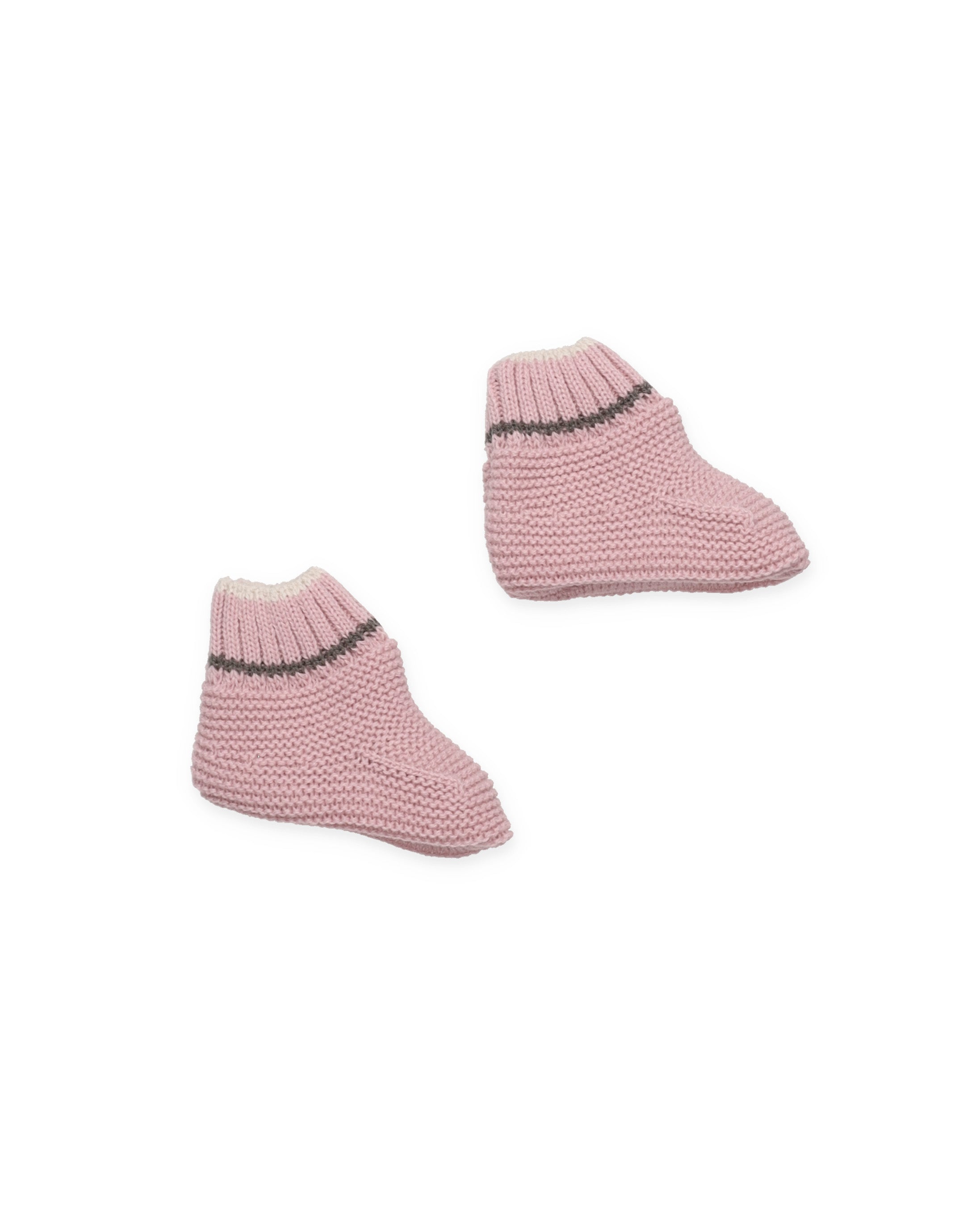 Botas con detalle de rayita. Realizados en punto con ribete en tono contraste en el puño canalé, estas botas están pensadas para los primeros paseos en los días fríos. Un detalle sutil que aporta carácter, sin perder la dulzura.