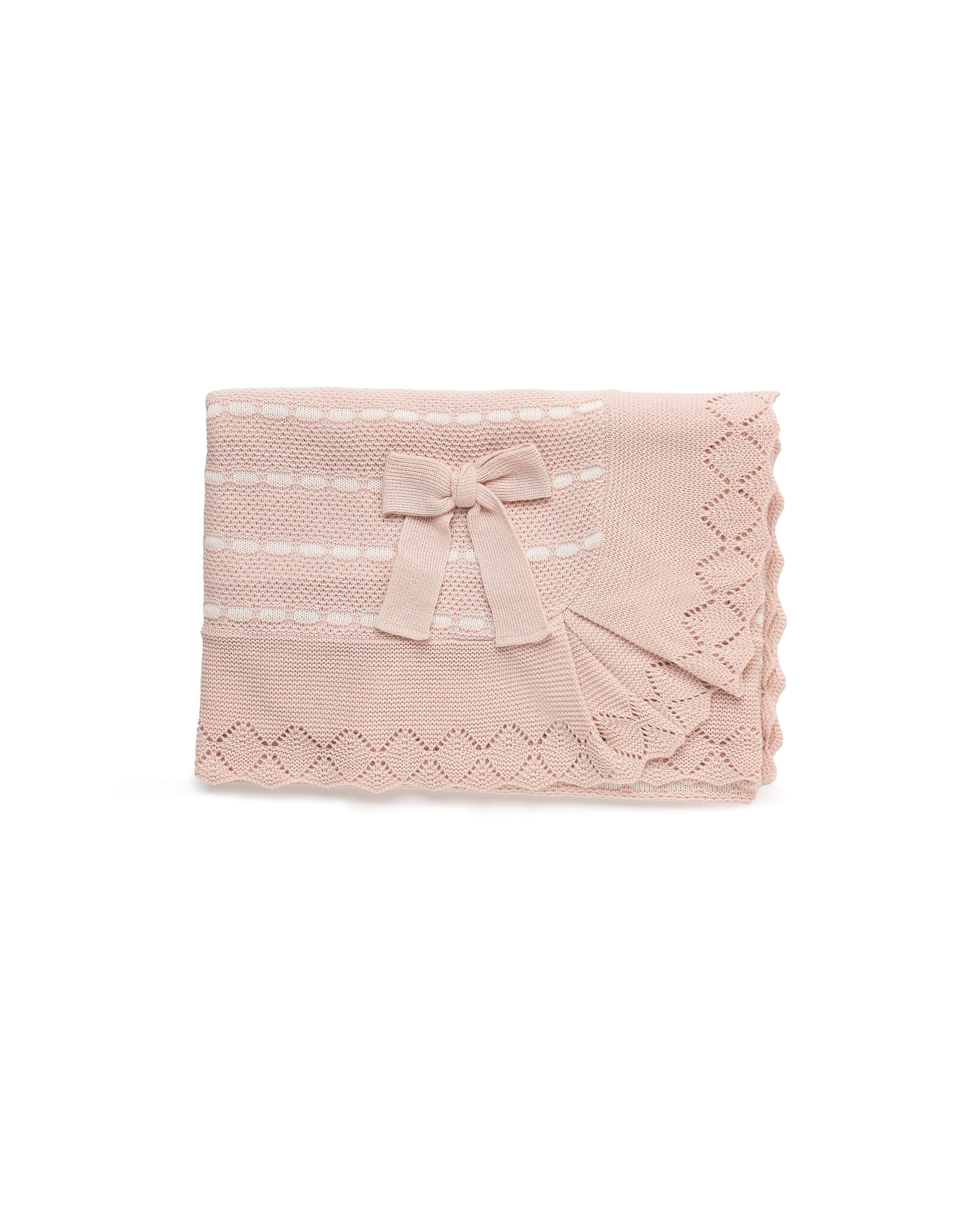 Chal de punto con recogidas y pasacintas decorativas. Volante estrecho en el borde.