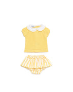Conjunto con braga con volante en tela de flores. Un modelo dulce y delicado para los primeros conjuntos.