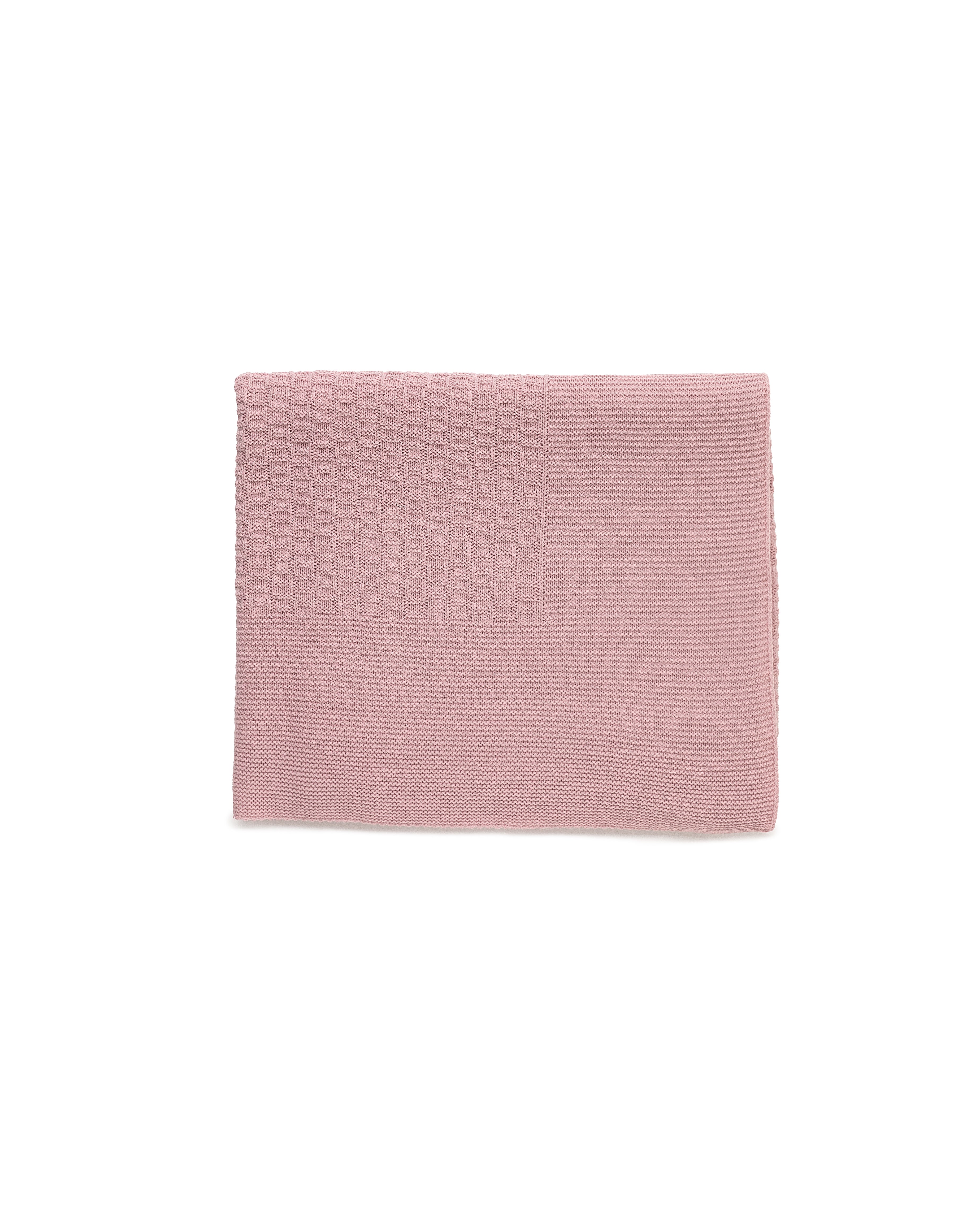 Mantita de punto con dibujo central de cuadros. Diseño simétrico con acabados limpios. Tacto suave, ideal para uso en capazo, minicuna o para acompañar al bebé en casa.