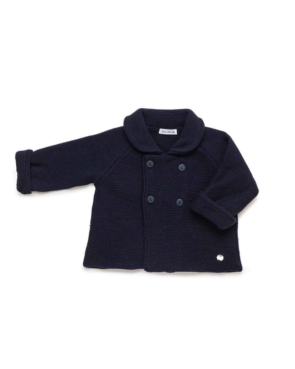 Trenca de punto tricot grueso con cuello redondo y cierre cruzado de doble botonadura. Diseño cómodo y versátil, ideal para abrigar con estilo durante los meses fríos.
