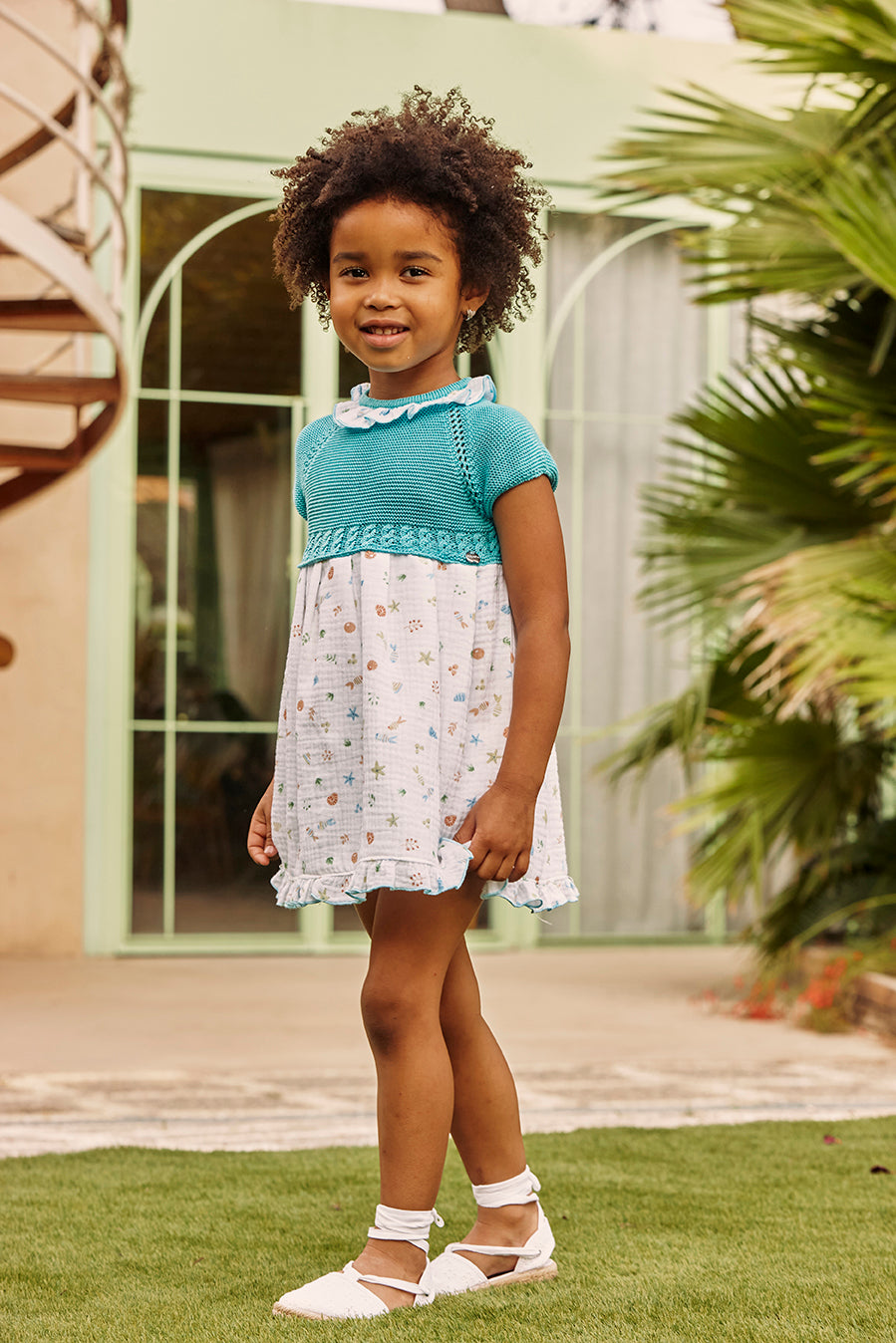 VESTIDO CUERPO DE PUNTO TELA MAR
